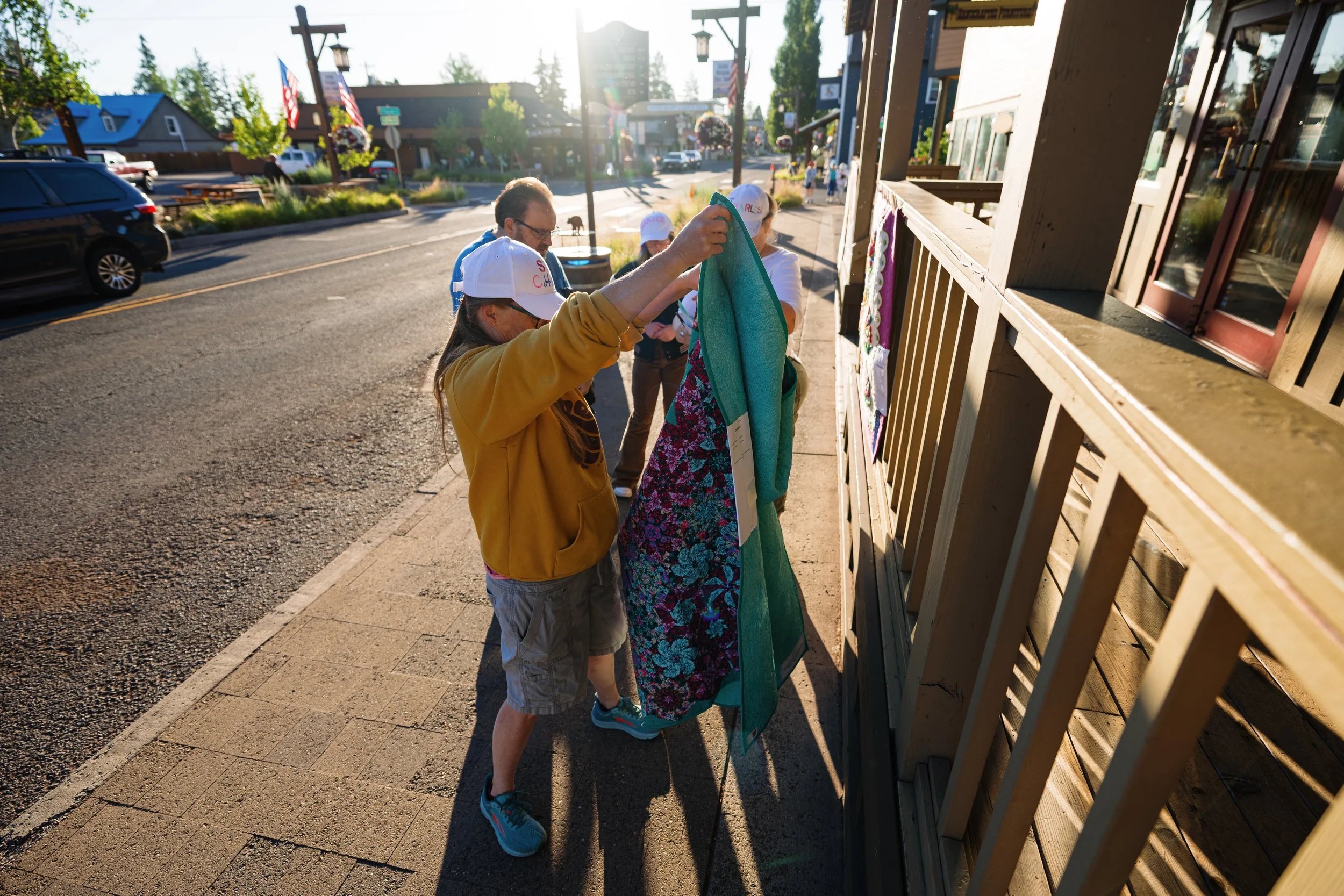 Every second Saturday in July, the streets of Sisters burst into color as hundreds of quilts transform our mountain town into the world’s largest outdoor gallery. This extraordinary event wouldn’t be possible without the energy, care, and creativity of our volunteers. Whether you’re a longtime local, a visitor with a love for quilting, or someone looking to be part of a lively community tradition, volunteering with the Sisters Outdoor Quilt Show is your chance to make a really impact—and have fun doing it.